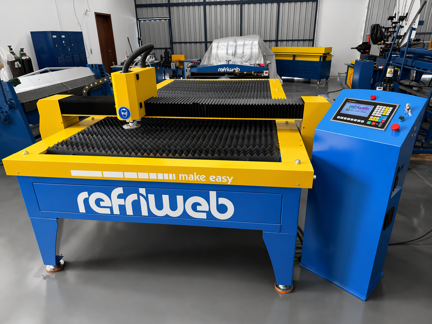 O modelo CP1C6*1530 REFRIWEB é o principal equipamento para corte de chapas voltado à fabricação de dutos,